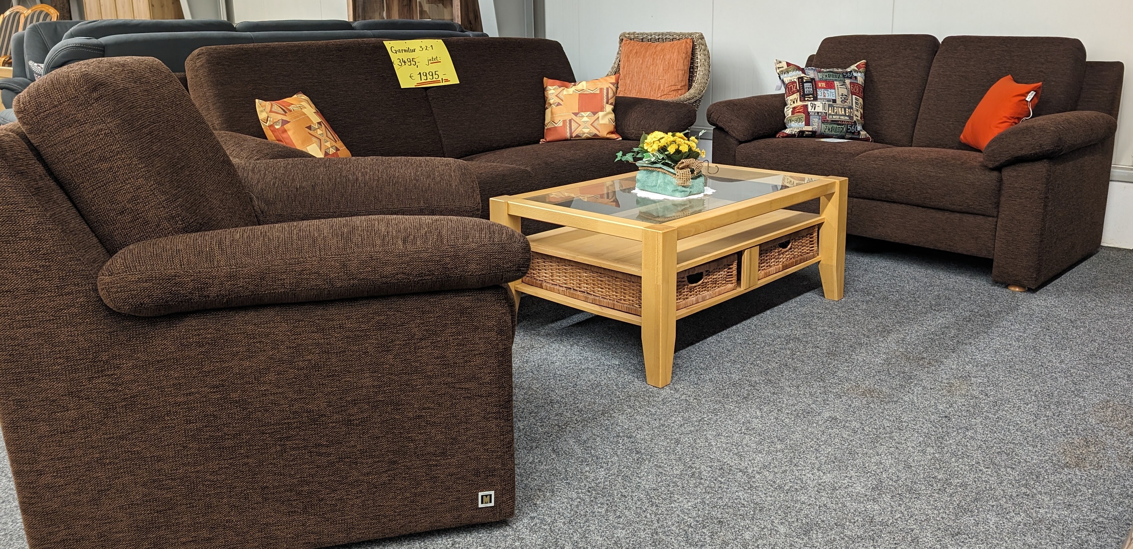 Garnitur Die Garnitur besteht aus einem Dreisitzsofa, Zweisitzsofa und einem Sessel. 3.495,00 € 1.995,00 €